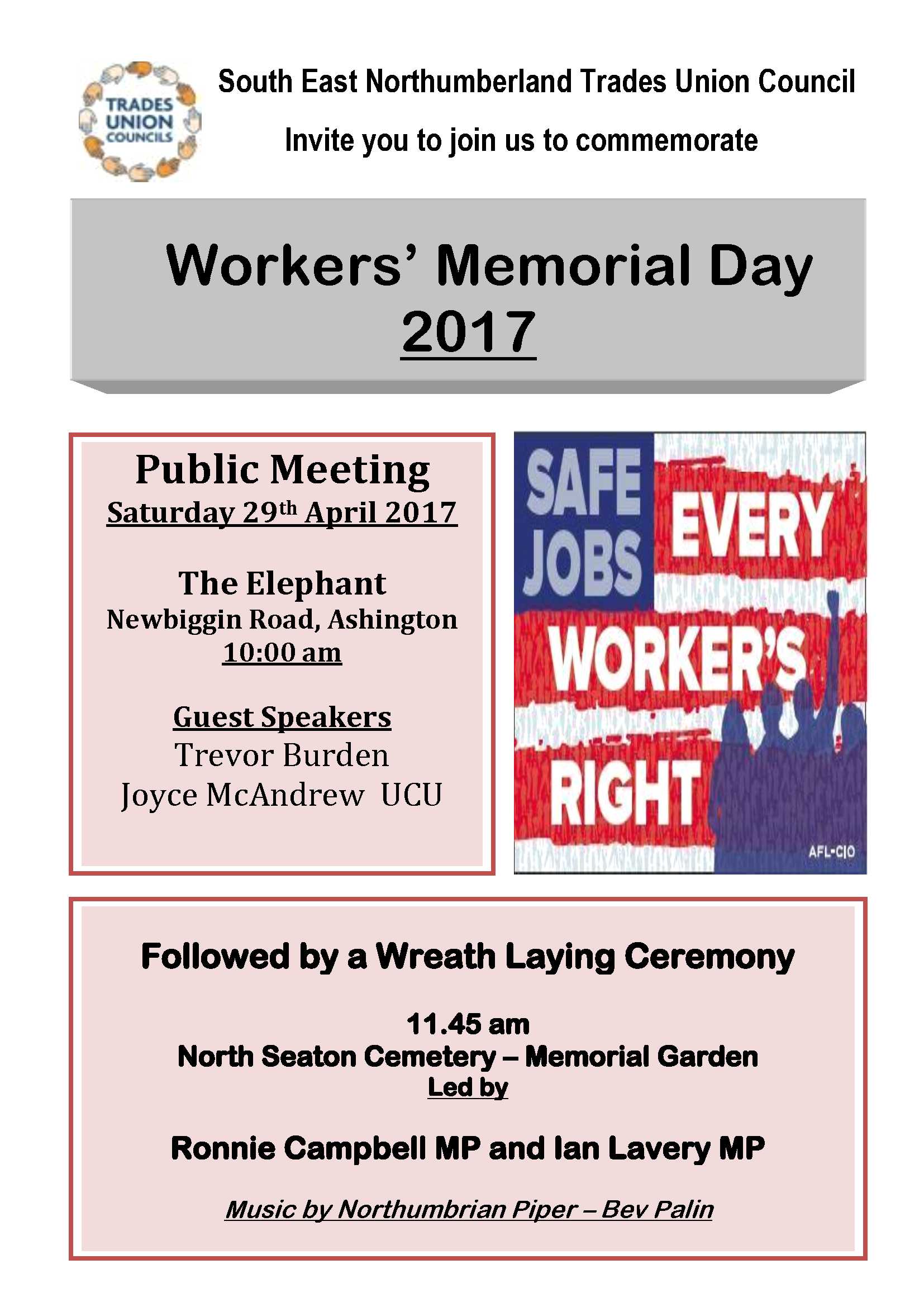 International Workers’ Memorial Day public meeting: Ashington, 10am