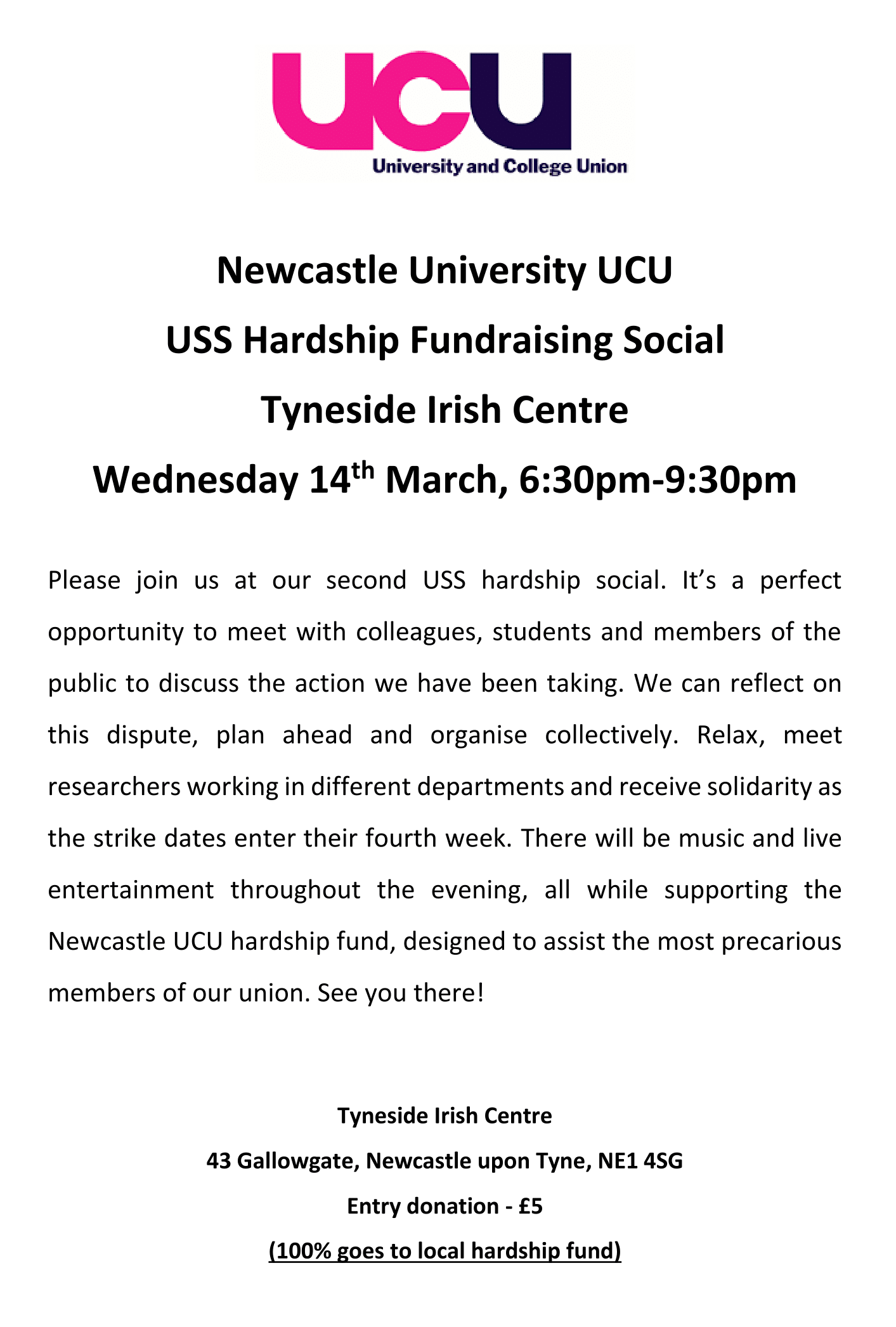 UCU Newcastle University hardship fundraising social